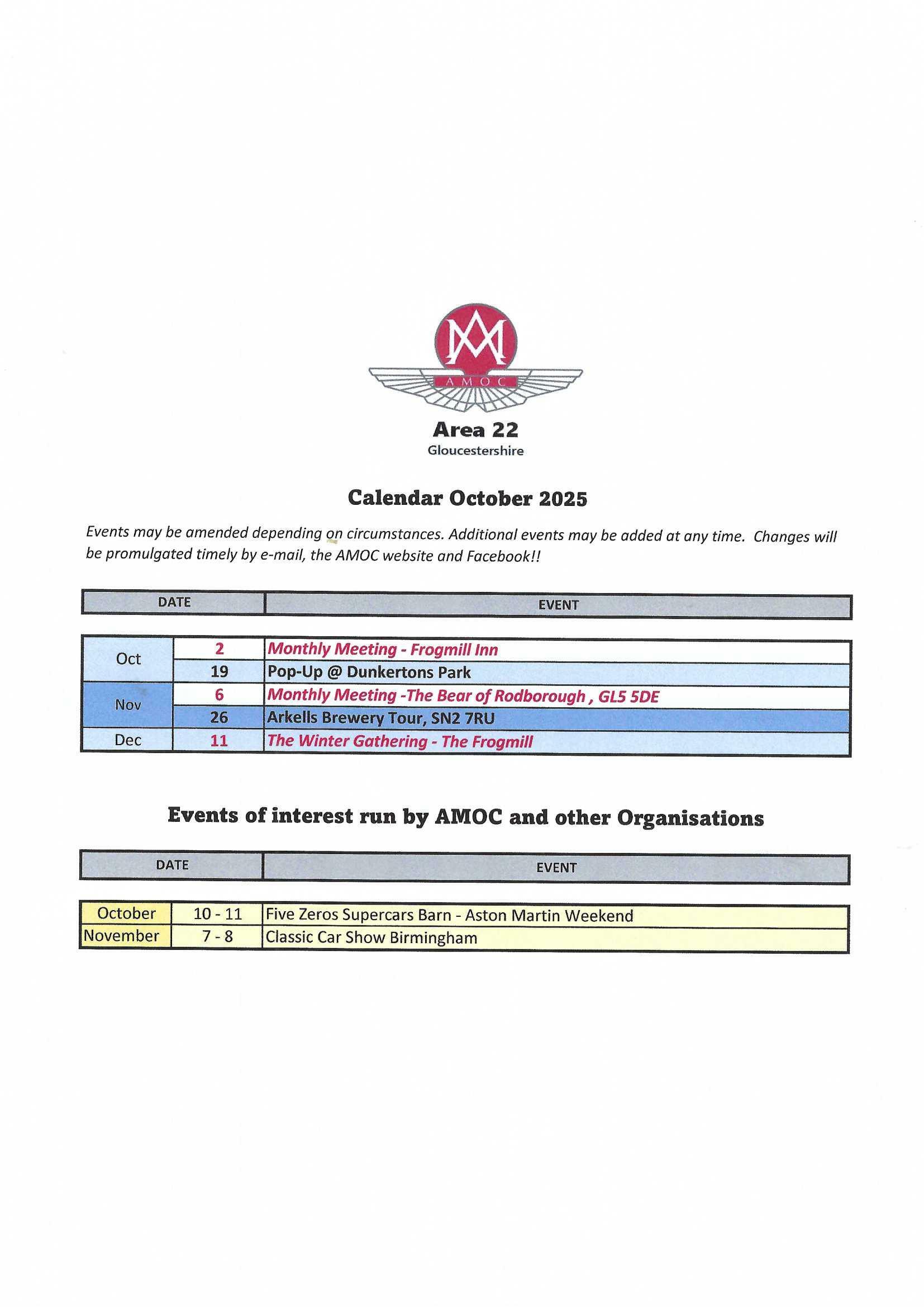 Thursday 11 December will be the Winter Gathering at the Frogmill.  I have sent out an overview including the details of how to book a room should you wish to stay over. The same message is on the website should you have lost the e-mail! This was a great finale to the Area 22 year in 2024 and we are sure it will be just as enjoyable this year.