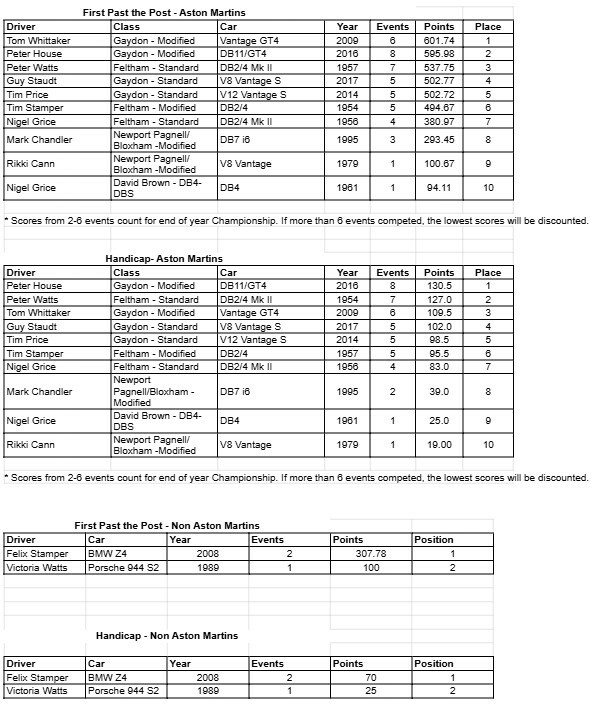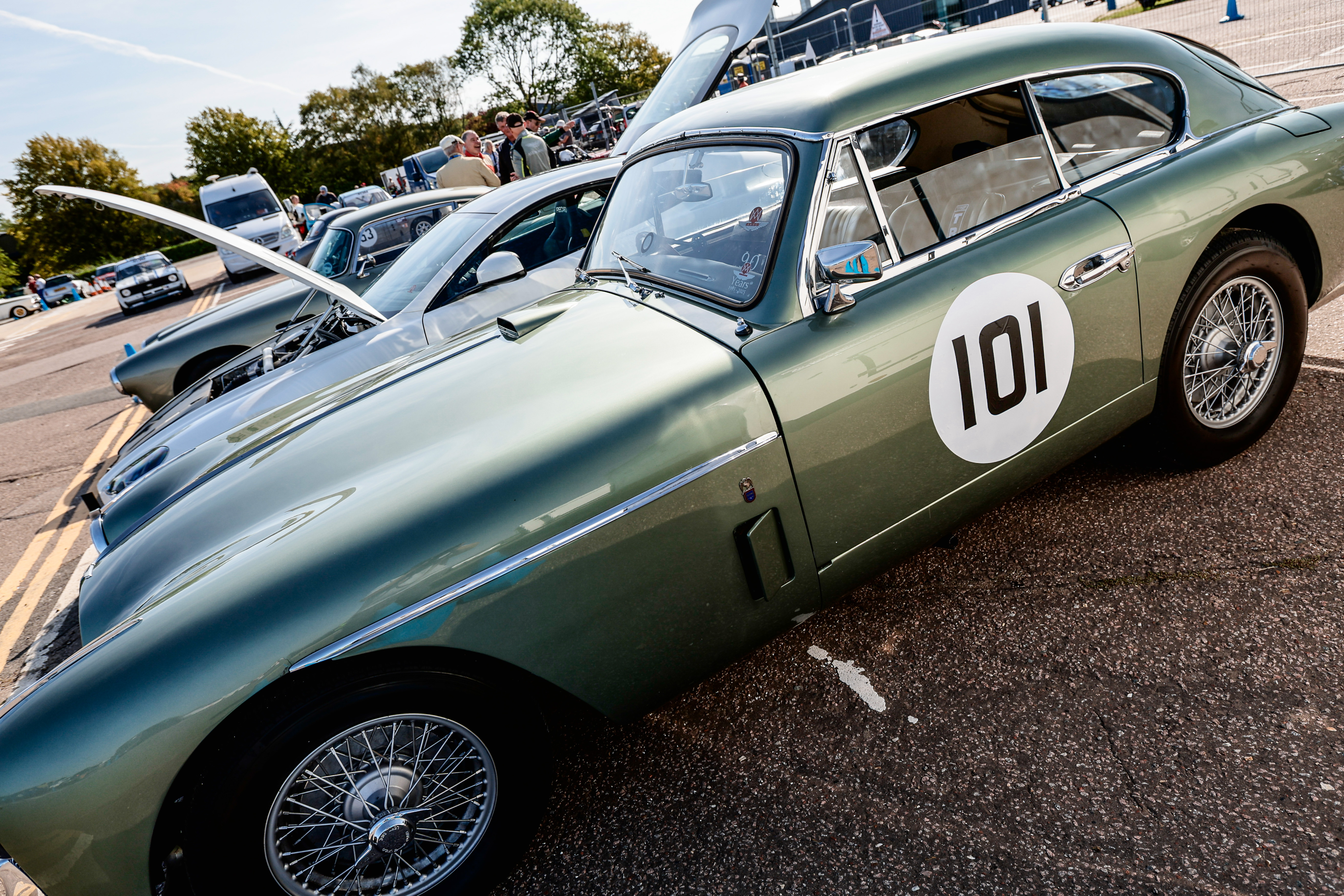 Still, this (the weather, not lack of Spitfires) was Good News for the six doughty competitors from the AMOC. We had four modern Vantages of various stripes (late V8S – Guy Staudt; V8 Rally – Peter House; V8 GT4 – Tom Whittaker; V12S – Tim Price) and two old bangers – Peter Watts in his sweet DB2/4 Mk ll, and me in my DB4 series lll road car – the DB2/4 Mk ll, in which I usually compete, was unfortunately bust. Guy as usual had his pit crew with him, his wife Huguette. How is that fair, I should like to know?
