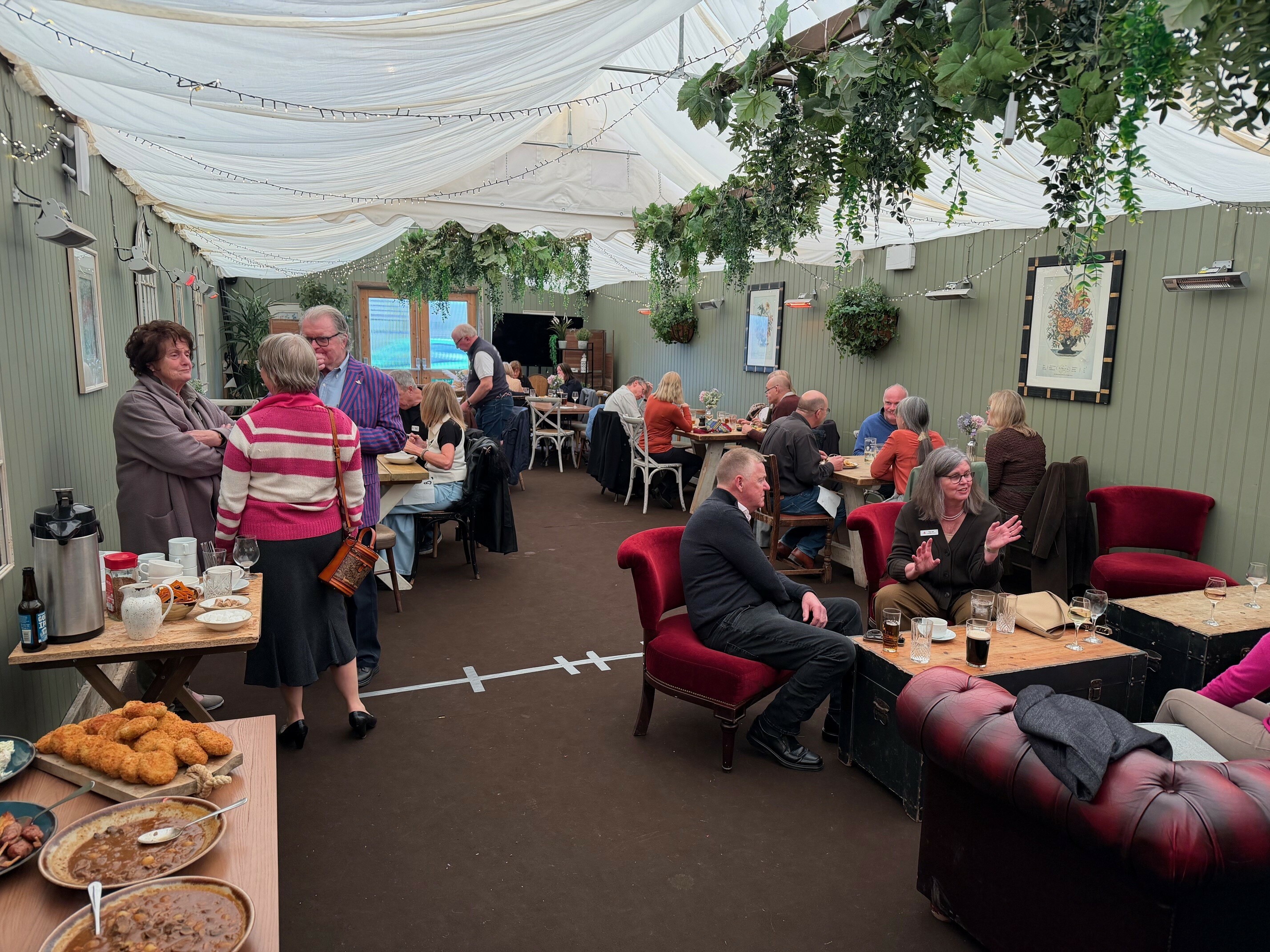 Moving on from a packed public bar, The Stables room provided the perfect venue, allowing members to spread out and talk even more. The buffet arrived: venison bourguignon with roasted carrots, parsnips, chicken kofta with roast new potatoes, smoked haddock fishcake, the list went on. What more could hungry Aston Martin members want?