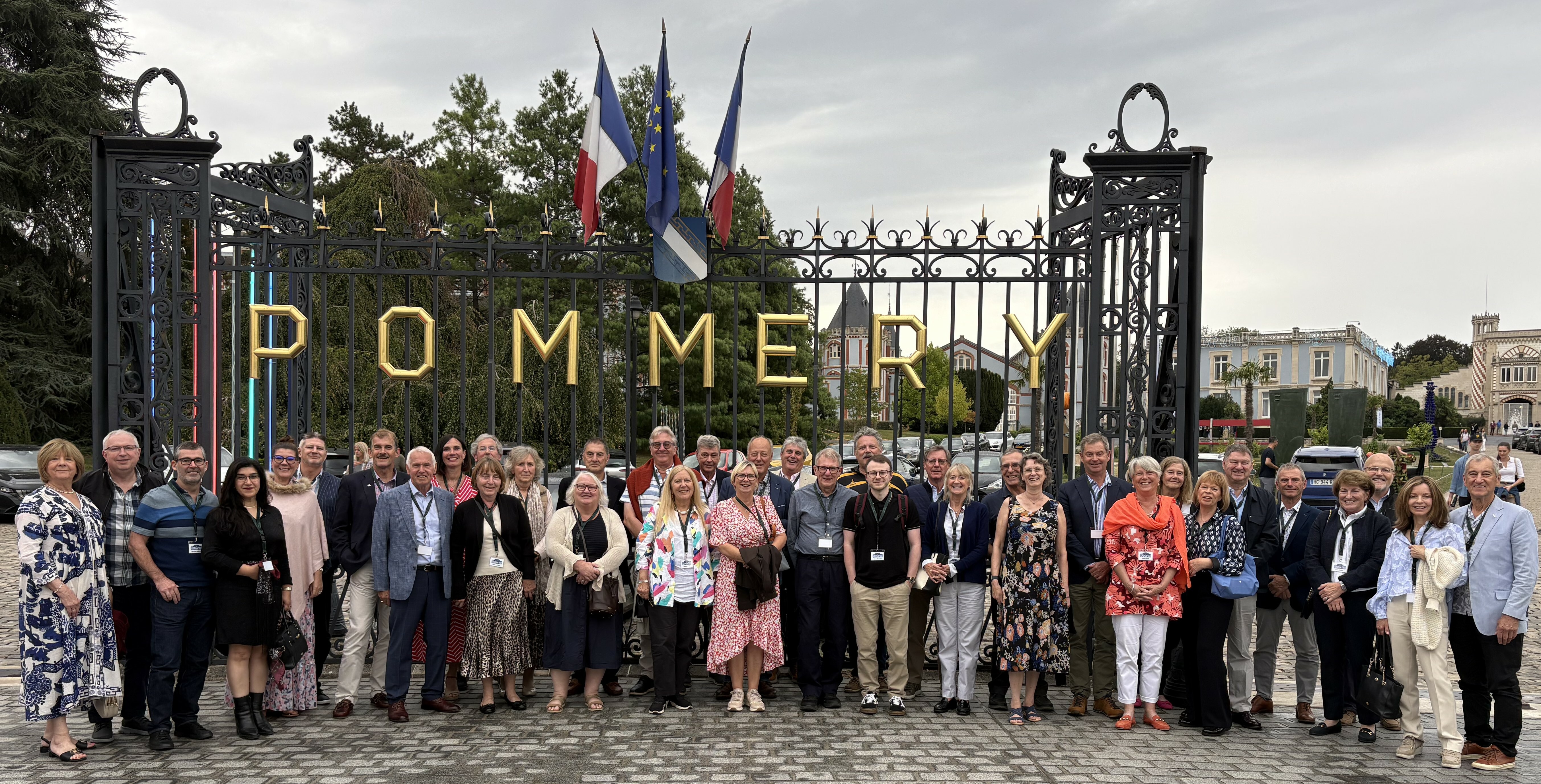 Dinner followed a private guided tour of our Sponsor Pommery Champagne Caves and was held in their beautiful Art Deco Villa Demoiselle. Here we had a group photo.