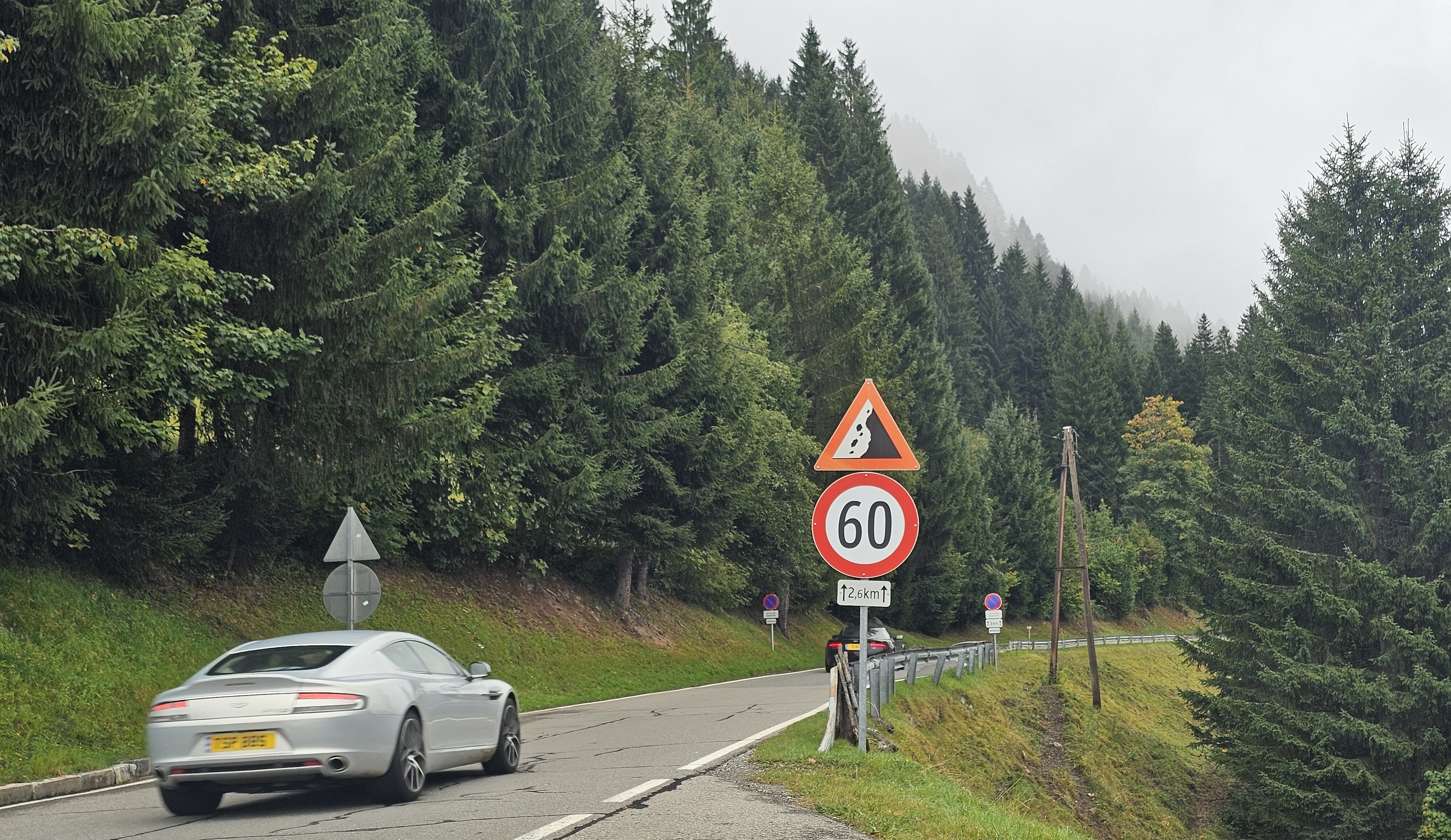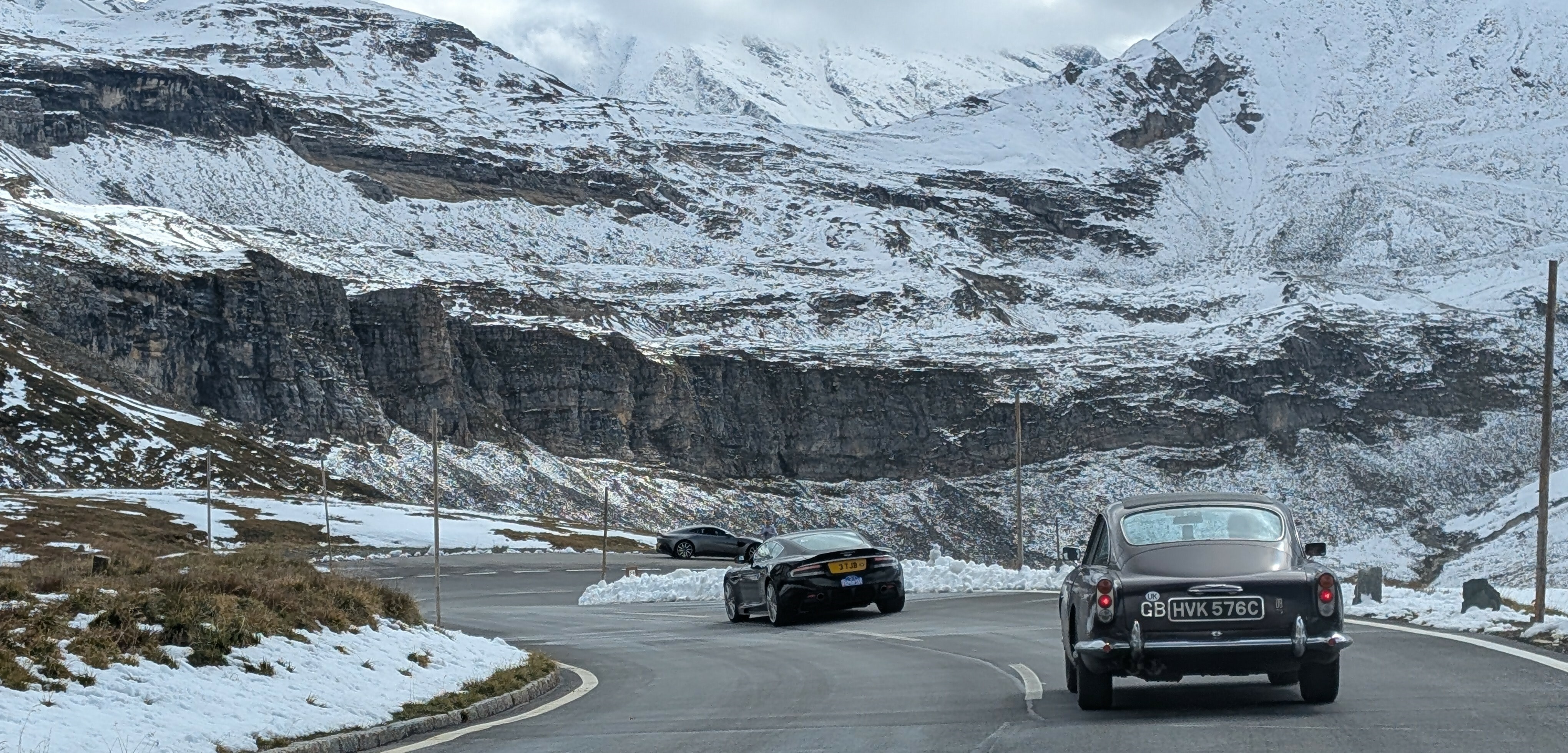 Day 1: we were fortunate that the Grossglockner High Alpine road was fully open, unlike when the 72 Aston Martins went on Friday only to be turned back before the top. This 48Km route goes through the heart of the Austrian Alps and up into the Hohe Tauern National Park and peaks at 3,798m high. We stopped off at the Pasterze Glacier. 243Km later, we were in the Italian Dolomite Mountains, ending at the Hotel Marmolada in Corvara.