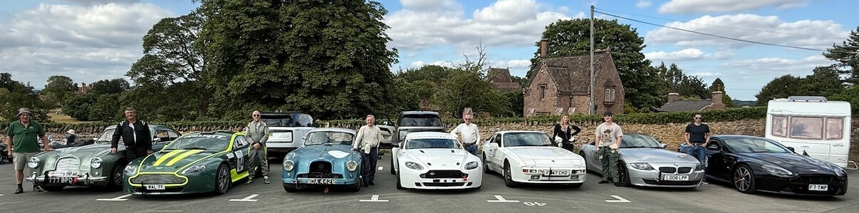 Two race prepared GT4 Vantages: Peter House, green and Tom Whittaker white. Tim Price completed the Vantage team with his standard V12. DB2/4s were represented by Tim Stamper in his rocketship Mk I and Peter Watts in shiny Green standard Mk II. Mark Chandler joined us with his vintage Riley, Felix Stamper in his Z4 roadster and newcomer, Victoria Watts, in a bright white Porsche 944.