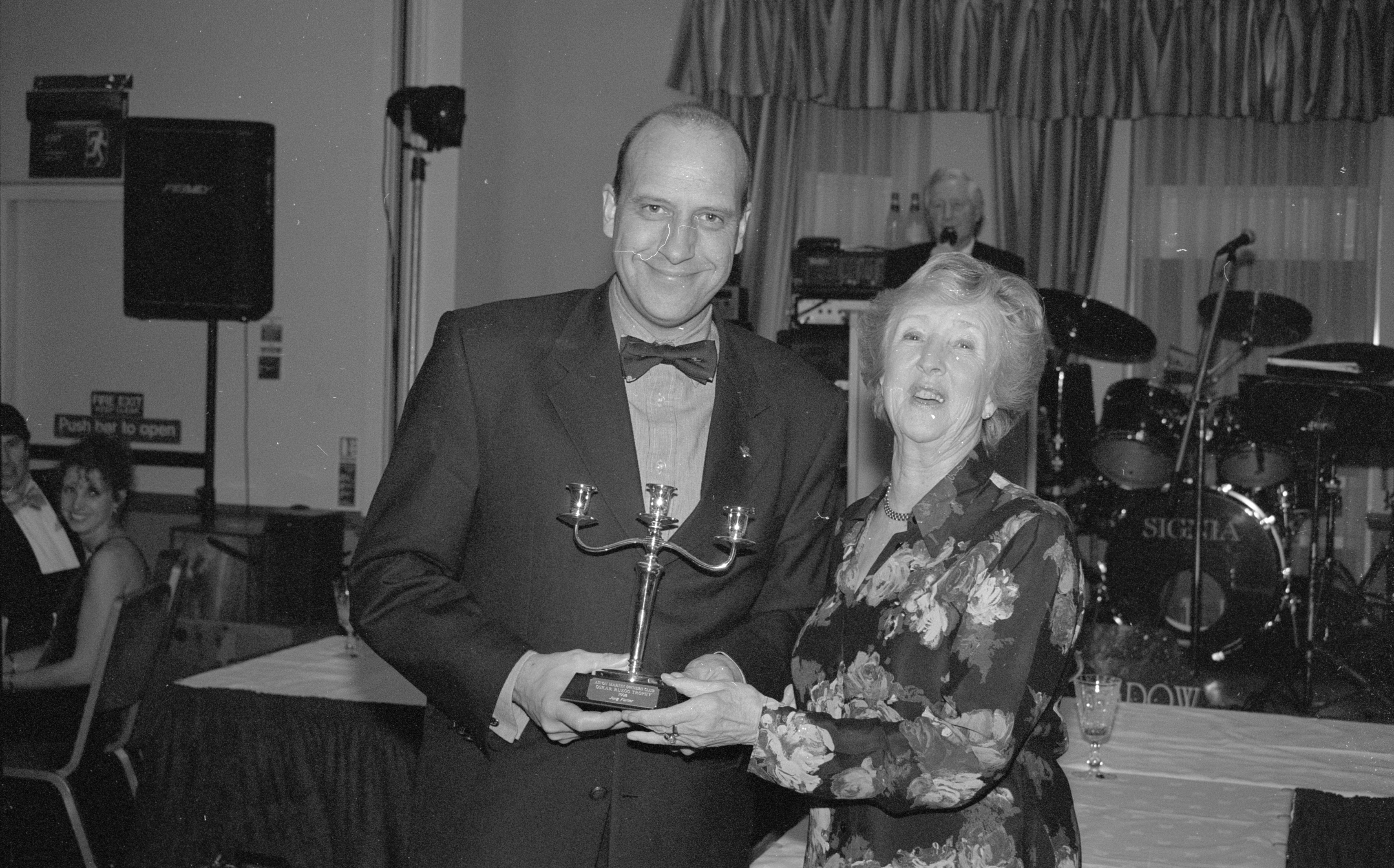 Below right: Swiss Section Chairman Jurg Furter was presented with the later version of the trophy by Pam MacGregor, 1998.